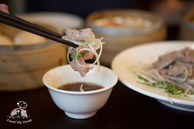 使用美國牛搭配銀芽跟蔥絲一起吃,記得沾特製醬油,
