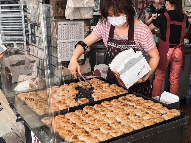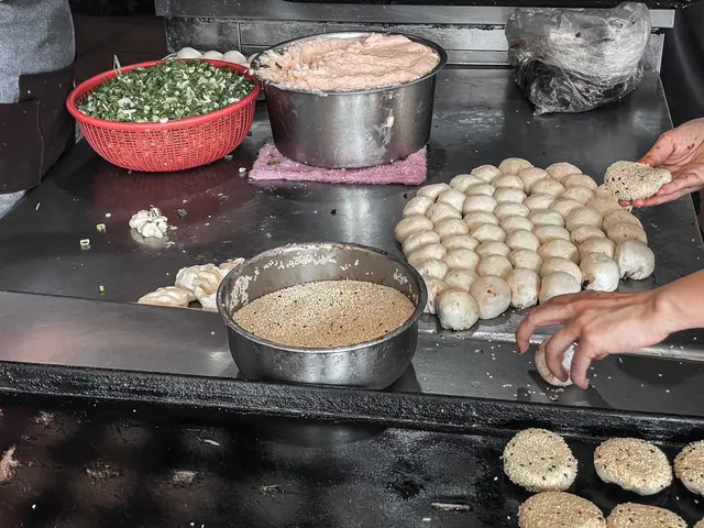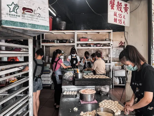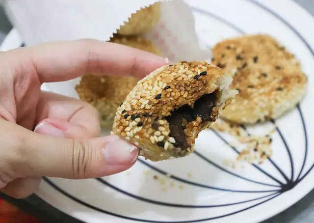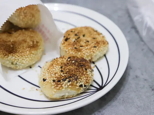 這間已經經營20年的在地小吃,老闆娘說最大的訣竅就是新鮮,每天新鮮現切的三星蔥、和著老麵的麵團與鋪滿滿的白芝麻,製作出一顆顆如同蟹殼一樣金黃可愛的小燒餅,是很多萬華人從小吃到大的騎樓美食。2022年開始起漲為每顆15元,但還是完全不減排隊人潮,周末路過還是滿滿的人呀!