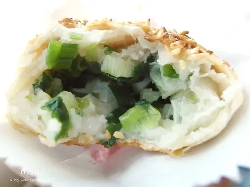 裡面包了滿滿的蔥與些許的絞肉餡!