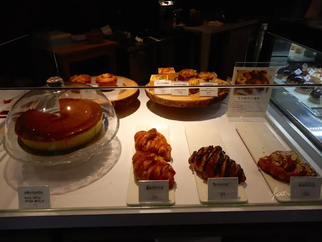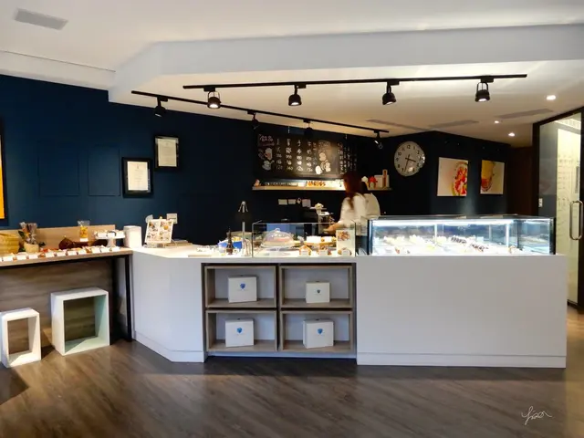 照片中櫃子的後方是他們的工作區,透明的玻璃讓大家都可以看到裡頭做甜點的情況。