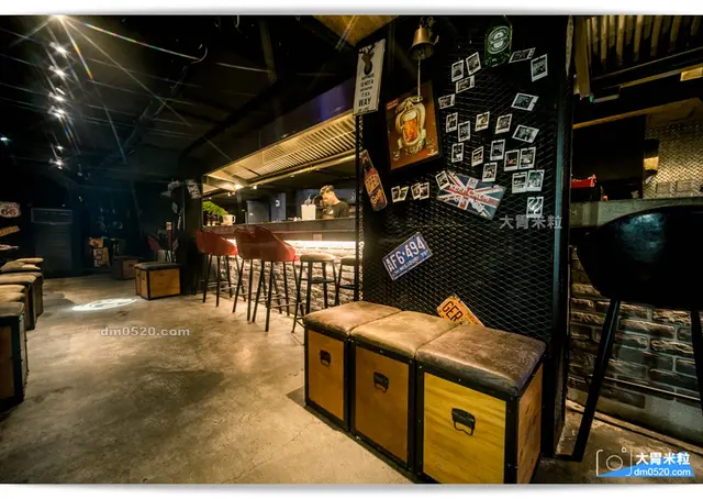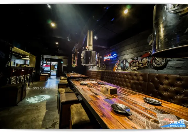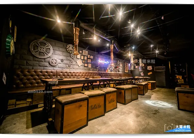 長桌牆面掛上許多美式裝飾,搭配烤肉吸煙銅管,非常舒適!