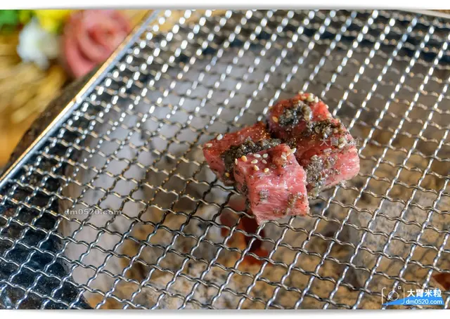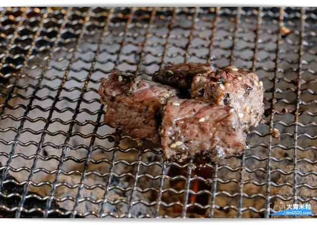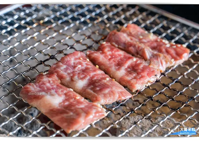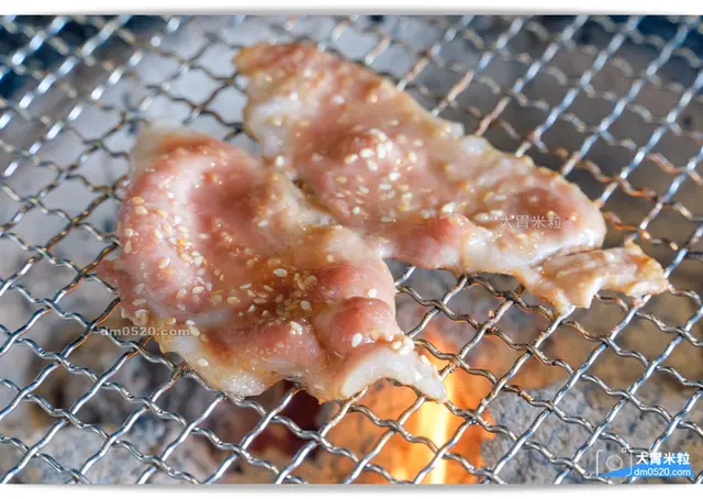 招牌牛五花幾乎每桌必點!一放烤網,油脂立刻滴入炭火,