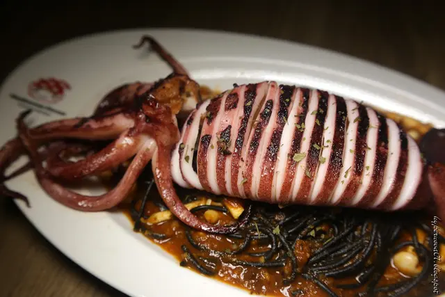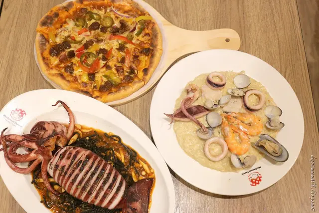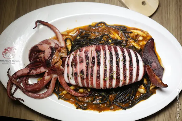 茄汁墨魚麵附煎烤魷魚排