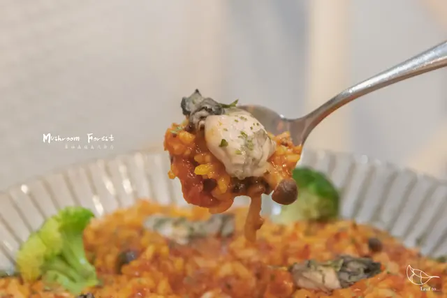 除了菜單上常態供應的招牌口味之外,蘑菇廚房也會根據季節性,推出不同的季節限定品項。造訪時正好遇到先前曾經推出過、頗受歡迎的王功牡蠣茄汁燉飯,使用了來自彰化王功的肥美牡蠣,搭配氣味厚實的茄汁燉飯,牡蠣的鮮味和蕃茄微酸十分契合。