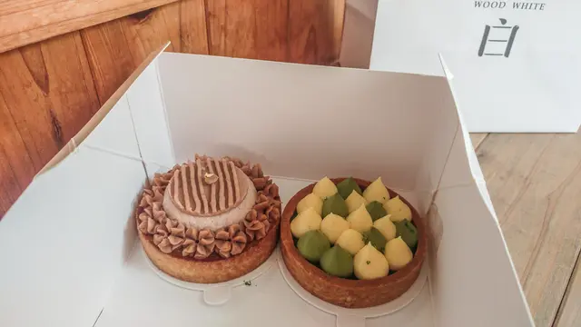 行天宮捷運附近儼然成為小型甜點店的聚落了,除了之前介紹過的蛋宅(搗蛋鬼工作室)、才新開幾個月的紀路、這間熱度持續一兩年都沒有減退的甜點店木白甜點咖啡店也非常知名,如果喜歡法式甜點的人一定不可能沒聽過。其實我路過木白甜點咖啡店數次,應該說每次到行天宮站就會繞過去瞧瞧,但假日總是大排長龍因此從來沒有成功用餐過。今天路過鐵了心就過去外帶兩顆!一直這麼懸在心上也不是辦法,總是要把這間店拿下我心裡才踏實!(到底是什麼奇怪的疾病?)