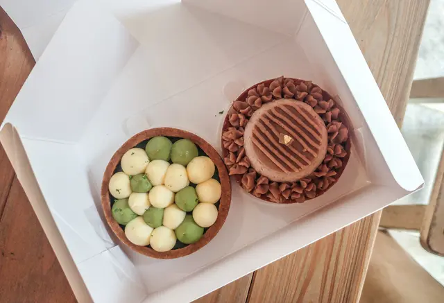 解決辦法就是我先把檸檬霜吃完,再把抹茶與塔皮一塊吃,挺好的!
