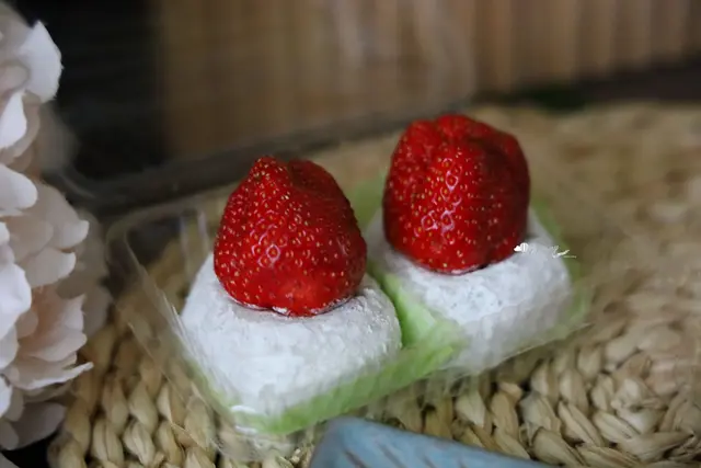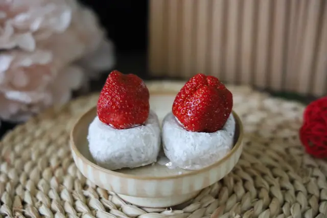 用尺寸不小的草莓,直接放在大福上,賣相很好欸!