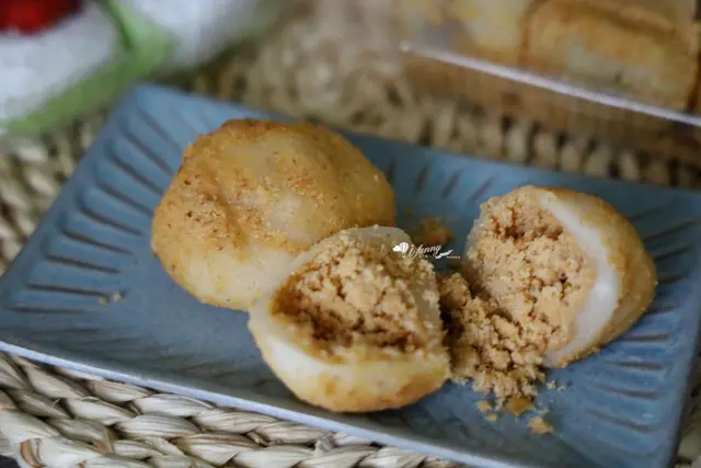 因為還搭車回家,花了一小段時間,所以回家後打開時是有點受潮,外層花生粉有些脫落了!