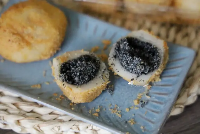 這個芝麻口味,一用剪刀剪開就直接爆餡,是真的用料很實在,芝麻清香且口感滑順,唇齒留香。