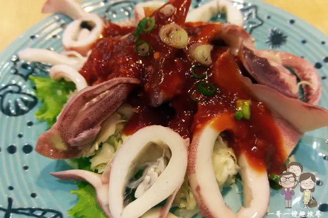 這不是五種口味的拼盤,而是軟絲拼鮑魚片而已,五味指的是五味醬。