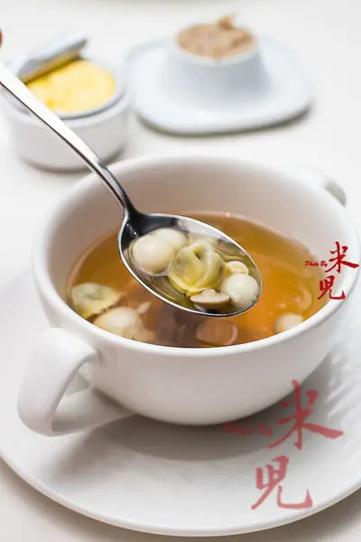 2580晚間套餐湯品,法式清雞湯,清鮮爽口,裡頭還有迷你的小餃子和菇的傘部,增加口感和風味。