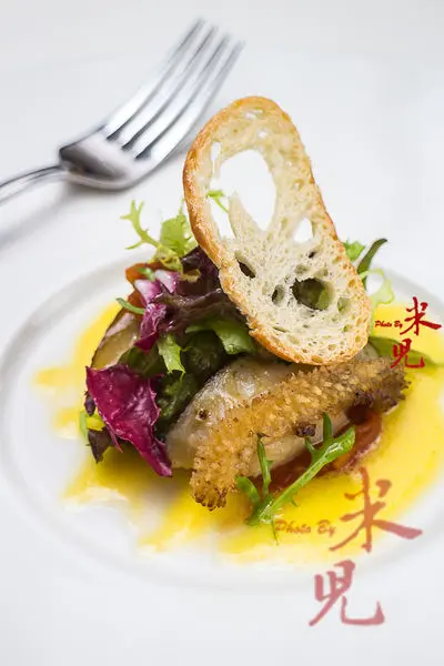 2580晚間套餐前菜,奶油香煎澳洲鮑魚,軟嫩的活鮑,煎過後搭配檸檬奶油和香料番茄泥。
