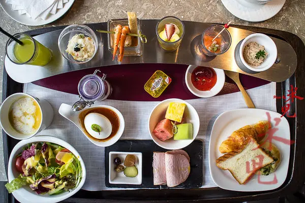 提供多種飲品選擇,服務人員會推到桌邊讓你挑選,真的很棒,我不喜歡吃包肥早餐,這種早餐真的讓人有被寵愛的感覺~~
