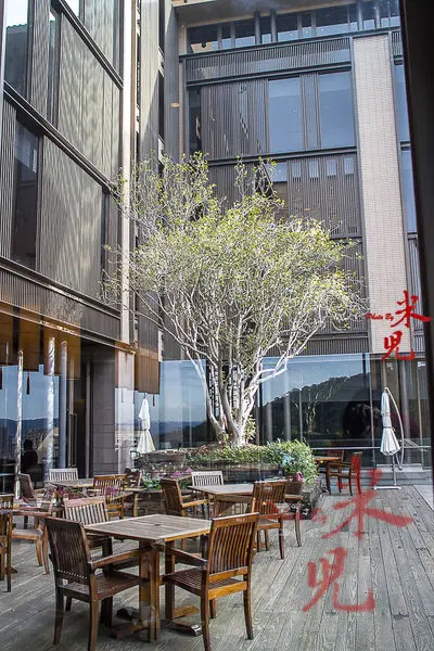 戶外座位區感覺也很不賴,那棵樹是老桂花,因為麗禧的企業花就是桂花!我也好喜歡桂花~