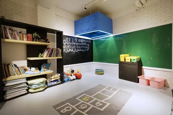 說了這麼多都還沒帶到我最愛的部分,孩子的遊戲空間是在B1,小孩都是直接趴在地上或坐在地上玩樂,所以入內是一定要脫鞋的,鞋子就放在外頭的鞋櫃裡