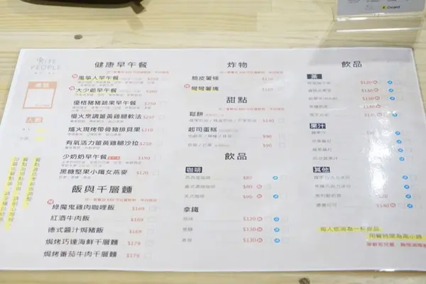 餐點價位落在100~250,低消則是一杯飲料