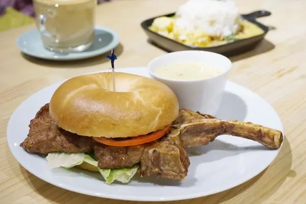 爐火現烤帶骨豬排貝果$210