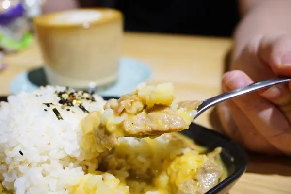 想像中的焗豬應該是上方鋪上厚厚的焗烤,挖起來會牽絲牽到天邊的那種,「風箏人」卻是將焗醬直接加入在醬汁中一起料理,融合以後是很滑順香濃的奶油香甜,這個醬汁我喜歡