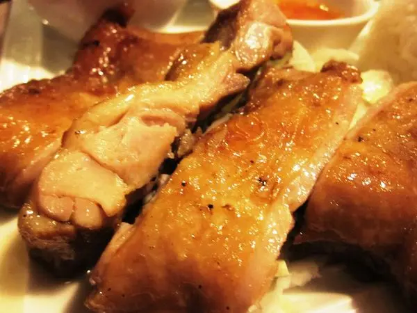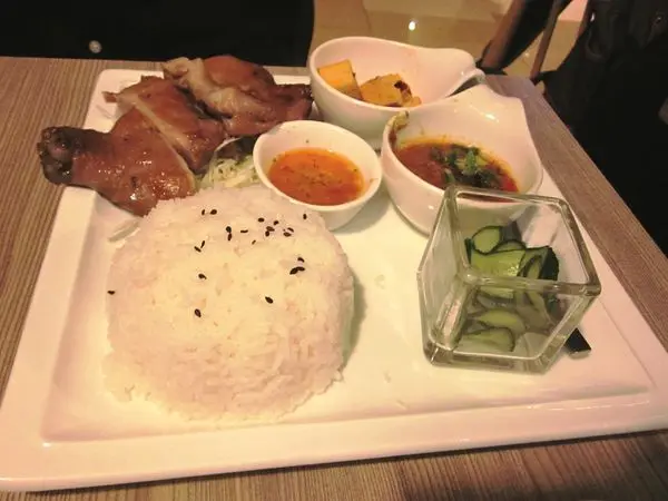 越式烤雞腿飯。烤雞腿好大呀,一旁的魚露或辣醬淋在雞腿上再搭配白飯,蠻好吃的,隨餐也都有附小黃瓜,可以解油膩還不錯。