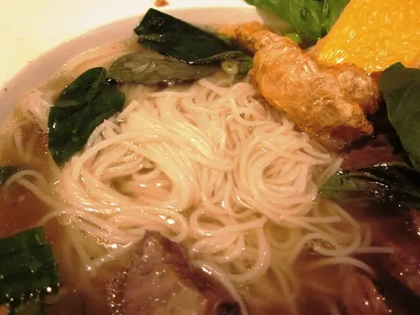 河粉也有附上檸檬片、海鮮醬和辣醬,將檸檬片擠汁加到湯裡,更顯湯頭清甜;牛肉也可以沾上醬料入口喔。