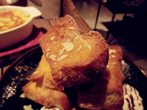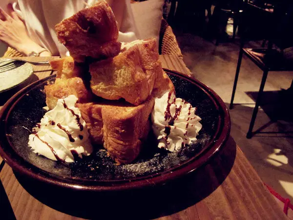 當然還有女孩最愛的焦糖肉桂蜜糖吐司,搭配兩團鮮奶油,哈哈略顯單調,希望能有一球冰淇淋啦XD不過嚐上一口發現,土司本身烤的酥脆,單吃就很好吃囉。帶點肉桂香氣,灑上杏仁粉,香氣十足。口感外酥內軟,沾點冰涼的鮮奶油,味道不會太甜膩,好吃極了。不過吃完飯再吃蜜糖吐司,真的好飽呀。