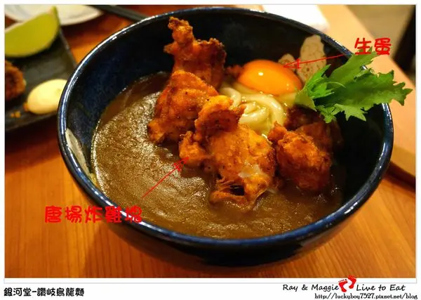 除了基本的烏龍麵之外, 還有濃濃的咖哩醬, 唐揚炸雞塊還有生蛋