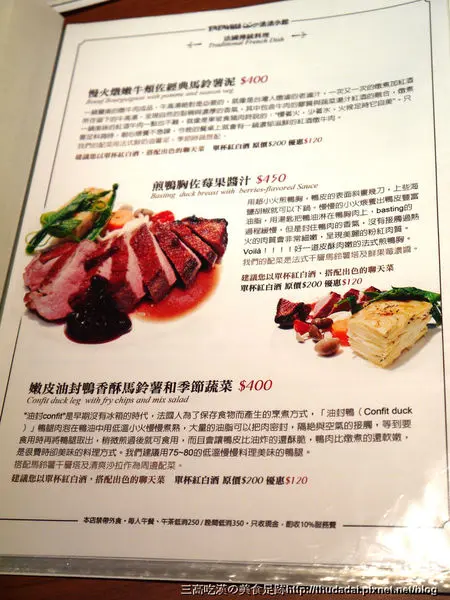 像是蠻多人推薦過的油封鴨腿,所以這次試吃主要是以這些餐點為主。