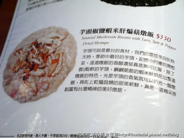 特別提到以台灣食材為主做繁複的烹調,集中精力而不備過多菜色,每季也會更換菜單。