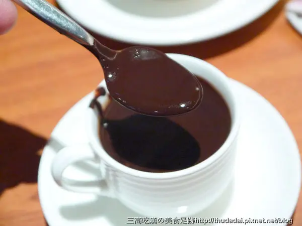 有如膏狀的熱可可則非常濃稠厚重,小口啜飲,苦中略帶酸味,很複雜阿~