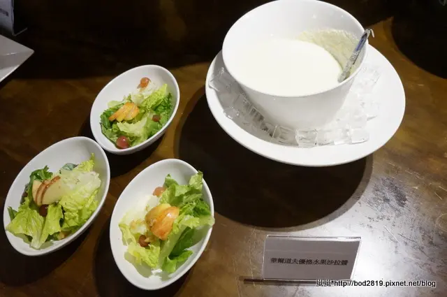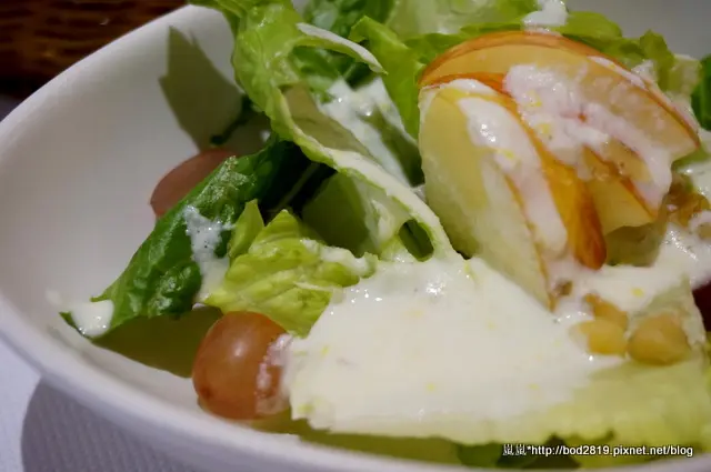 比較屬於蔬果沙拉,搭配的醬是優格,