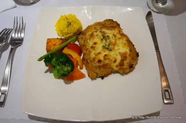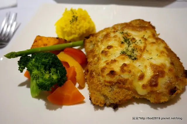 雞腿排本身的肉汁很多,軟嫩不乾柴,