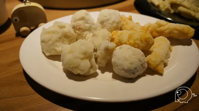 否則很容易就燙到了,花枝丸吃的到QQ花枝塊,而草蝦丸也是很有彈性但比花枝丸軟一點