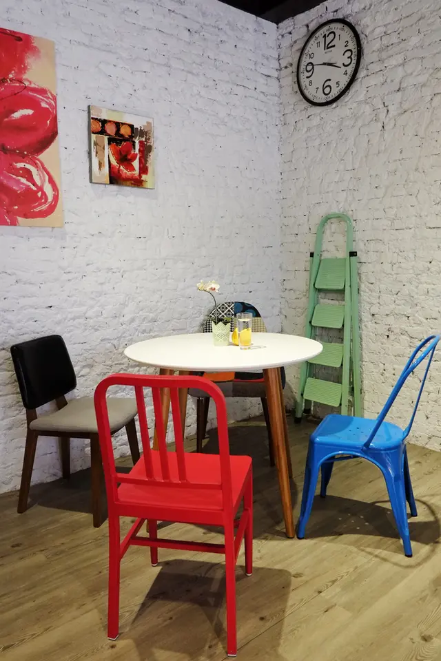 一樓店面位子不多,僅簡單幾張圓木桌、彩色座椅。