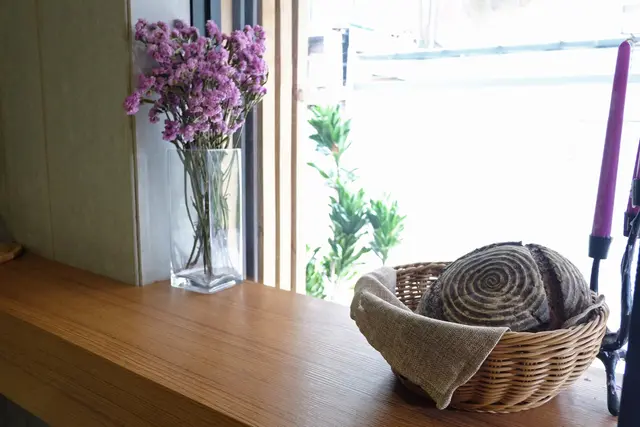 落地窗旁的迷你吧台在天氣好時,陽光穿透玻璃轉換成柔和的光線,