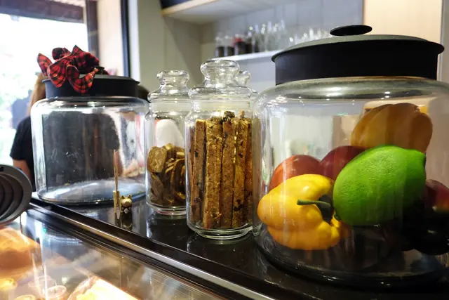 放在透明玻璃罐中的餅乾也是自製商品,