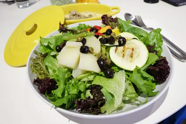 據說老闆娘洗菜非常要求,也因此這裡的沙拉吃起來就是鮮脆,且有蔬菜本身的甘甜,酸豆跟黑橄欖也帶出一些鹹味層次。