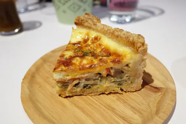 餡料滑嫩充滿濃郁蛋奶味,混著略鹹的煙燻鮭魚還有些許蔬菜甘甜,加上派底的酥香,瞬間忘卻熱量為何物啊!