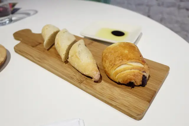 本來是怕光吃沙拉吃不飽,我與朋友一開始還加點了麵包--小法國跟巧克力派。