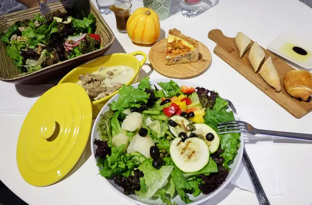 獨自坐在窗邊吃著沙拉、品嚐咖啡也相當愜意。