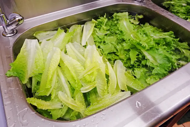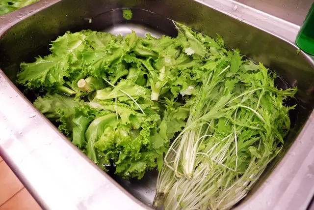 此時看到蔬菜已經泡在水裡,老闆娘說這就是第一步--親自採買回來的蔬菜先泡五分鐘,再用流動清水洗第二次。