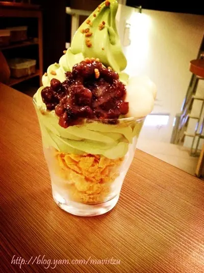 濃郁抹茶霜淇淋配上玉米片真是絕佳姿味阿^^