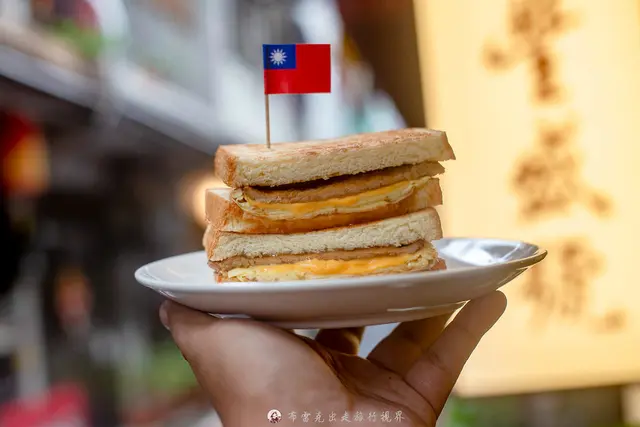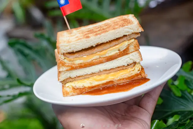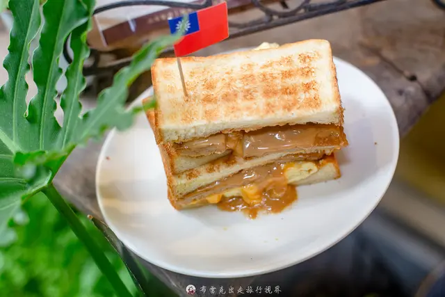 雙層花生肉蛋起司上面還插了國旗,其實還蠻針對國外觀光客吧!花生醬給的蠻多的,整個就要爆出來,但是起司的量就還好,自製的牛奶吐司因為有烤過,外層是帶有一點酥感,內裡則是非常鬆軟,算是PR值有得到80分以上的吐司,吃比來帶有一點甜香的奶味,肉片的厚度很剛好,跟花生醬的搭配也不會讓人覺得太膩口。