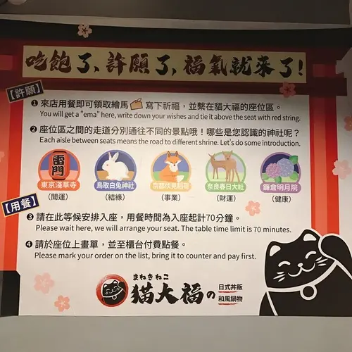 *🔸座位區間的走道分別是不同的神社,有東京淺草寺、鳥取白兔神社、京都伏見稻荷、奈良春日大社、鎌倉明月院,分別代表開運、結緣、事業、財運和健康