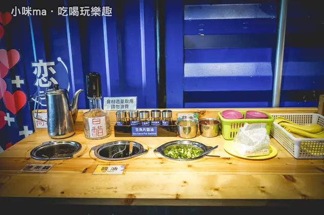 調味料跟餐具統一放在木製餐檯,一切採自助式,不收服務費