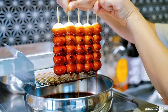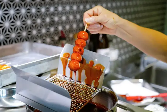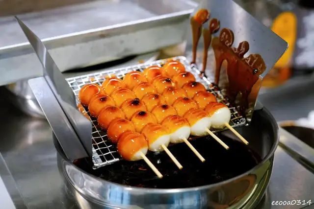 製作時會將糰子烤至表面微焦,再浸入秘製醬汁中,讓外皮吸滿鹹香風味。