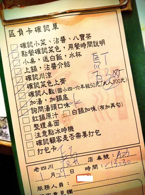 不過現在外場服務不好訓練,把要注意的事項列出來讓服務生去注意總比哪裡疏忽掉好。