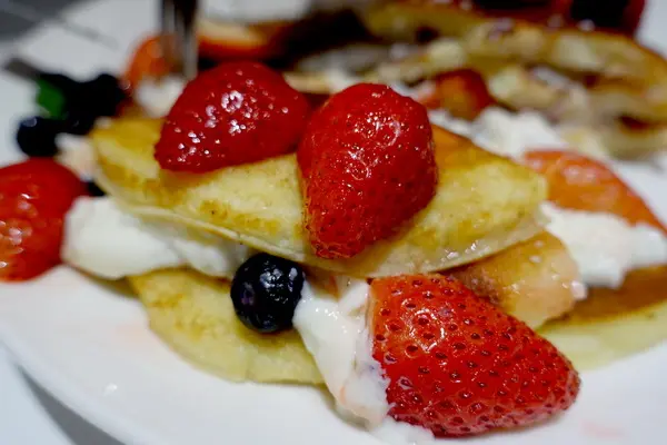 鬆餅裡夾的竟然是...燉奶 + 綜合莓果.
