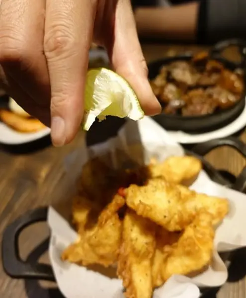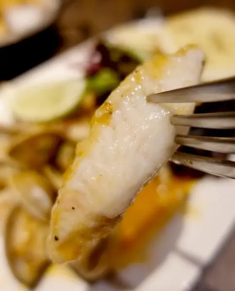 外皮很薄脆 ~ 裡面的魚肉很厚很多汁耶!!
