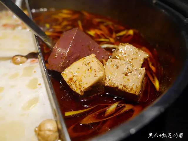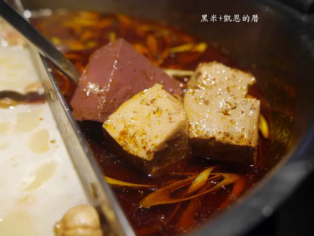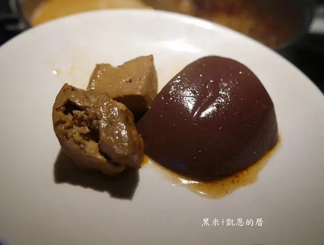 豆腐口感軟嫩並有麻口的香氣,鴨血細緻無孔洞,用筷子輕輕一劃即破