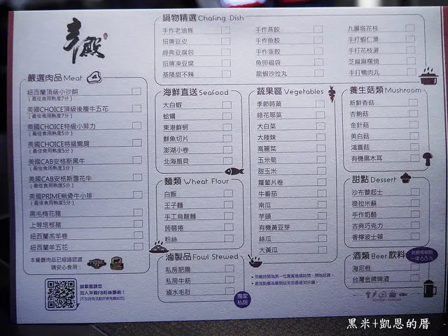 辛殿提供肉品、丸餃類、海鮮、蔬果、麵食、滷製品、菇類、甜點等品項很豐富